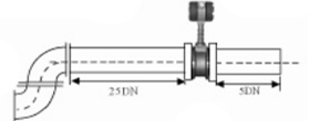 5、不同平面两个弯管的安装 如果流量计的前端有两个90°弯头,要保证流量计的前直管段≥25D,后直管段≥5D | | |||||||||||