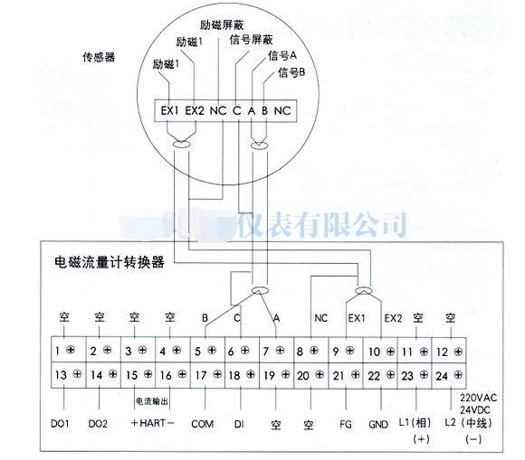 分体式电磁流量计接线方法图